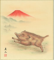 干支色紙 『戌』 No.1 富士に二匹の子犬