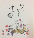 この色紙は、「いくつになっても今が旬」の文字とねずみを描いています。