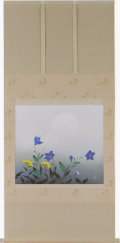 おぼろげな月の前に描かれた秋草。鮮やかな色使いの秋草が 心を捉える逸品です。