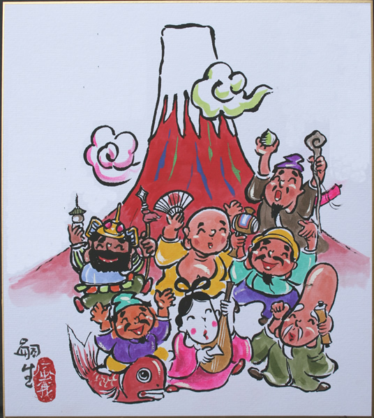 『目出た芽出たの 七福の舞い ハッ、それっ ず~っとこの家に居続けじゃ』