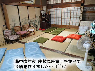 足りない分の座布団を借り、前日に試し置きをして会場を作りました。