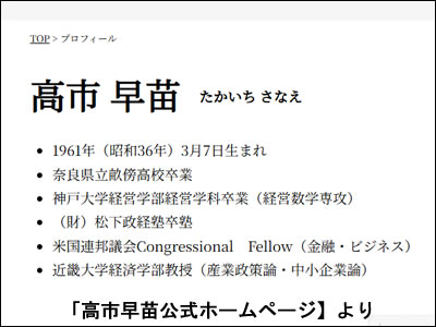高市さんは上記のホームページ記載のプロフィールで分かる通り、