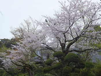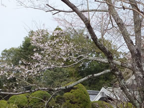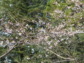 ・ 三分咲き 右の桜 (上の写真の桜) は結構沢山咲いているのだが、左の桜はほとんどがつぼみのまま。 |