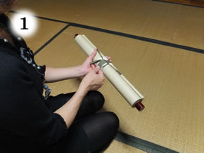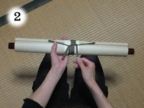 | 1. 『 文人表具 』 ・・・ | 「 丸仕立て(丸表装とも言う) 」 「 袋仕立 」 「 明朝仕立 」 などが代表的な仕立てです。 |