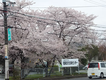 ・ ちらほら咲き 昨日よりは花が開いたようだけど、まだちらほらと言う感じです。 天理教前はつぼみ堅しでした・・・ |