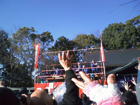 我先にと、福を頂こうと必死になってお餅に向かいました!